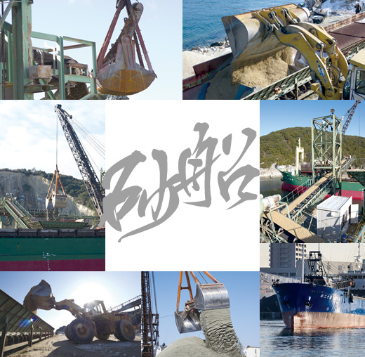 家島地域では機帆船の時代から「砂船」が活躍しており、 当時は岡山県や徳島県、和歌山県で採取された川砂の運搬を行っていました。 船の鋼船化が進む中、家島地域でも船体に採取装置を備えたガット船が瀬戸内海などで海砂の採取を手がけていました。 現在は海砂の採取が禁止されたことにより、 九州や四国などから砂を入荷し、その運搬供給を行っています。